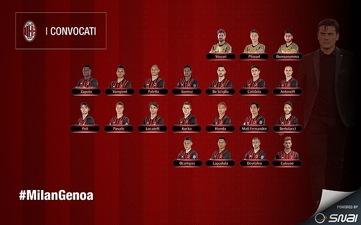 В заявке также вновь присутствует Патрик Кутроне и при определенном стечении обстоятельств мы вполне можем рассчитывать на дебют за основную команду талантливого бомбардира Примаверы.