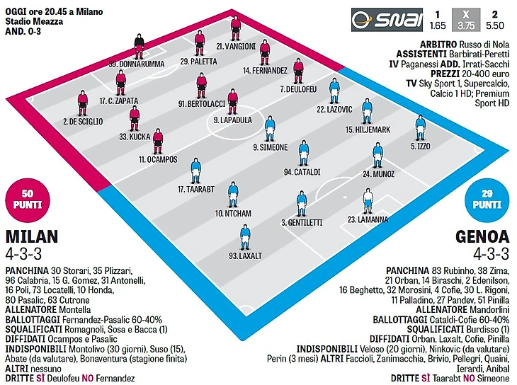 «Милан» же не потерял шансов на Европу, а потому ему кровь из носу необходимо брать 3 очка с одним из нынешних аутсайдеров Серии А, даже не смотря на значительные кадровые проблемы, которые беспрерывно мучают команду после в новому году. И игра с настолько «свободным» «Дженоа» как раз таки может не стать легкой прогулкой, не смотря на последние многочисленные неудачи команды, особенно если «грифоны» рискнут сыграть с «Миланом» от обороны.