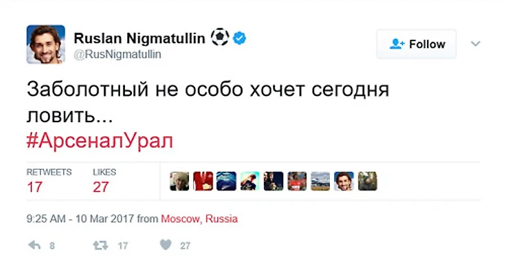 Позже Нигматуллин пояснил свой твит: «В этом матче я просто усомнился в квалификации голкипера «Урала», вот и все. Какие-то другие выводы делать не хочу. Нет желания устраивать бурю в пустыне».