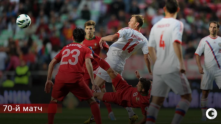 7 июня 2013 года. Лиссабон. ЧМ. Отборочный турнир. Португалия - Россия - 1:0. Василий БЕРЕЗУЦКИЙ - 70-й матч