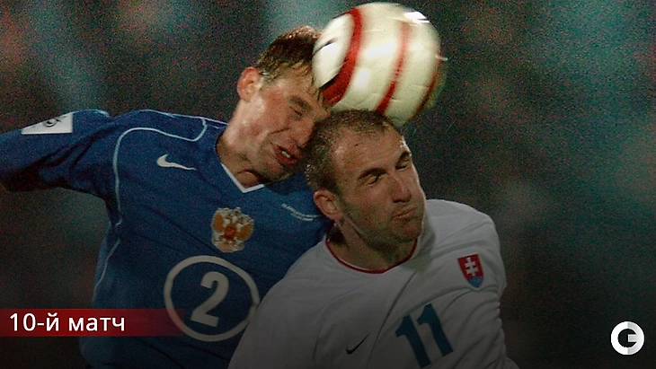 12 октября 2005 года. Братислава. ЧМ. Отборочный турнир. Словакия - Россия - 0:0. Василий БЕРЕЗУЦКИЙ (слева) - 10-й матч
