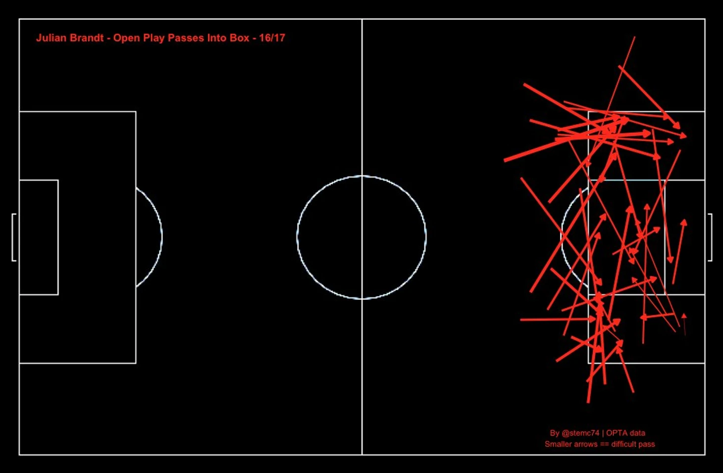 Юлиан Брандт - один из самых эффективных распасовщиков(без учета кроссов) в штрафной соперника: