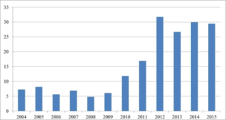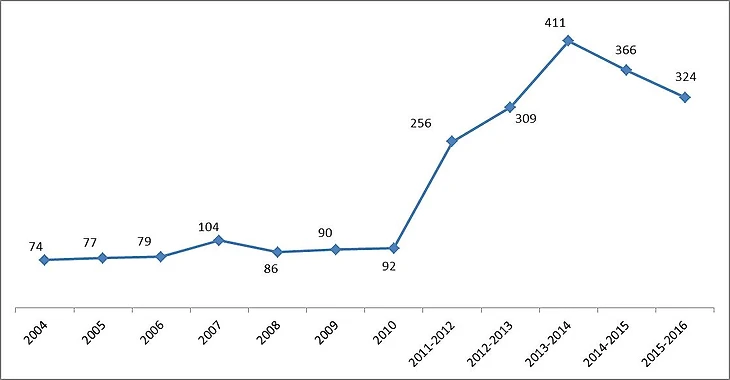 Динамика стоимости одного очка в РФПЛ 2004–2016: