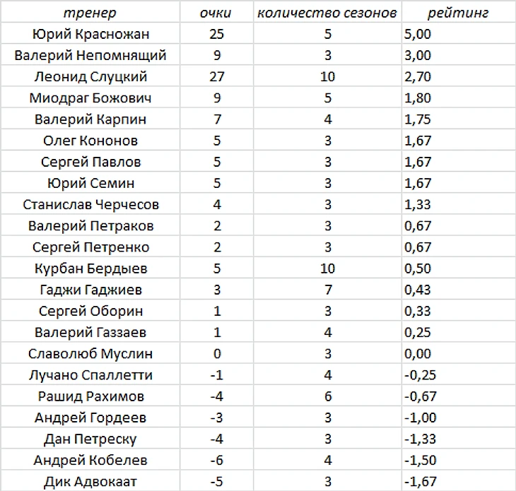 Футболономика в России [3]: Самые эффективные тренеры РФПЛ в новейшей истории российского футбола