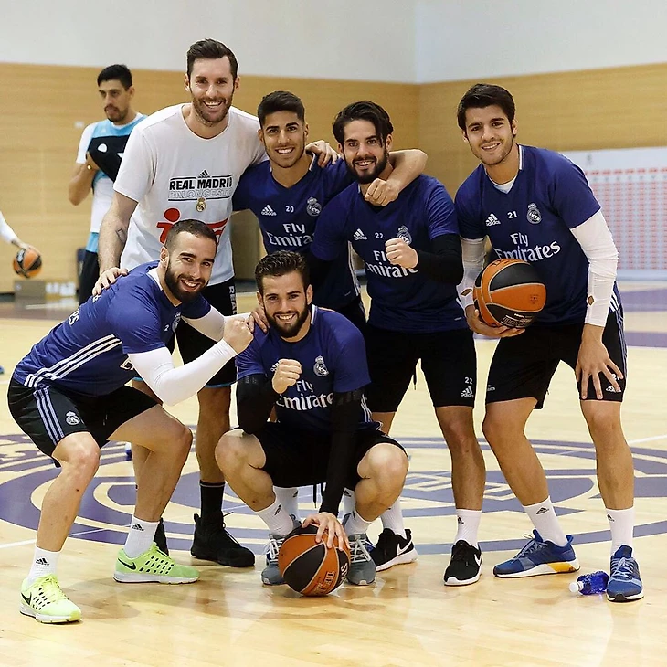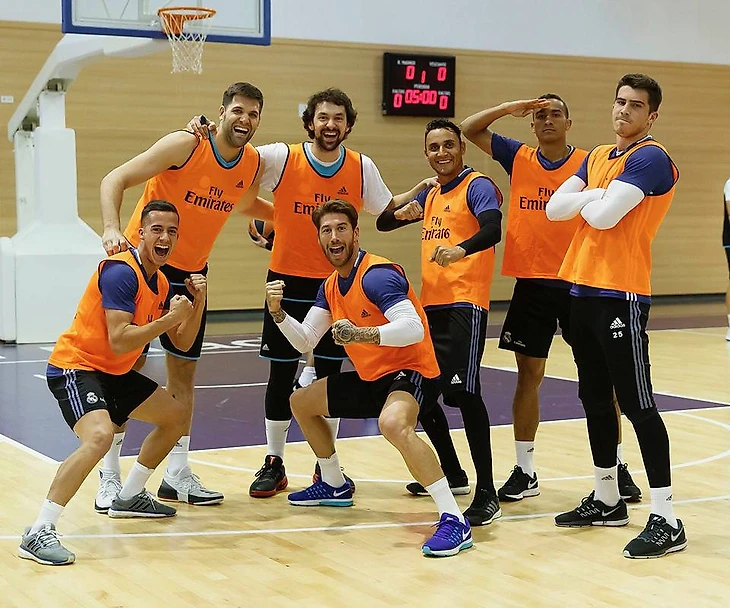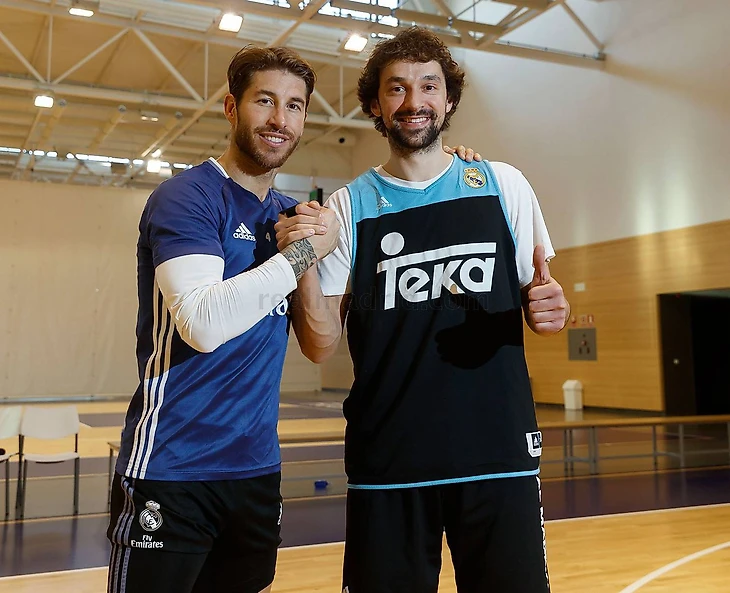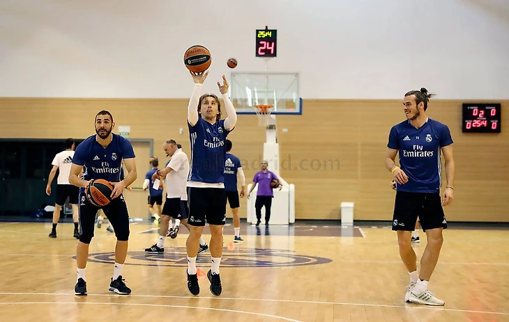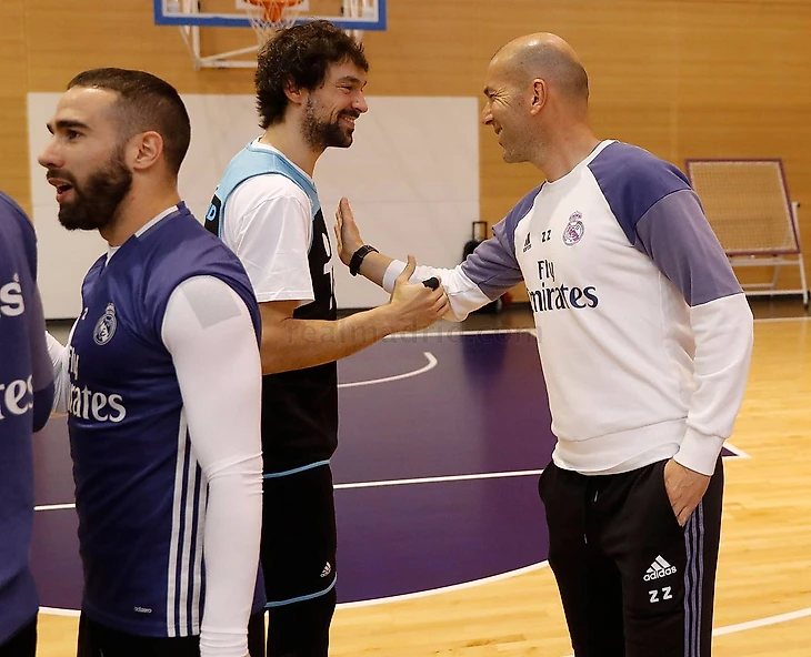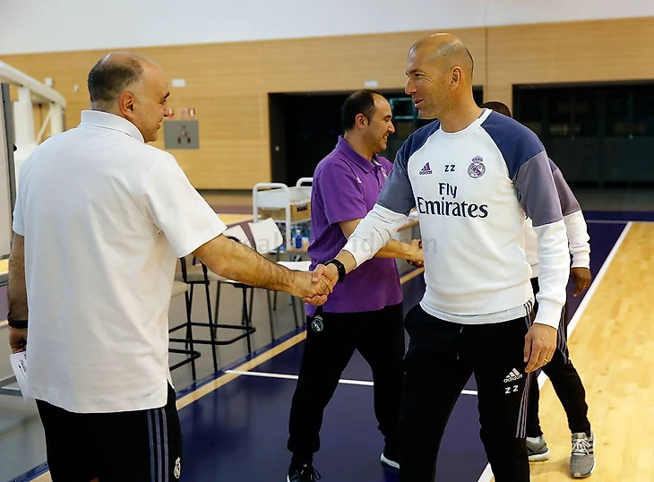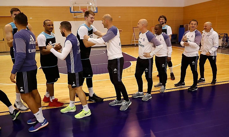 Зинедин Зидан и главный тренер баскетбольного "Реала" Пабло Ласо устроили совместную тренировку.