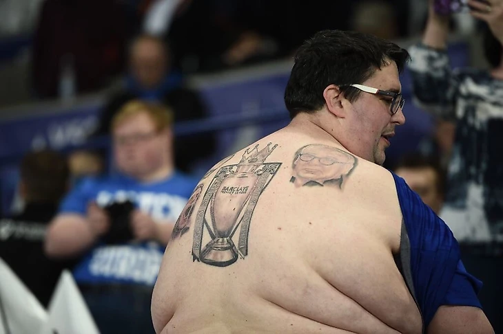 На матче 1/8 Лиги Чемпионов болельщик "Лестера" показал свои татуировки, а после матча сказал одному из журналистов, что скоро появится ещё одна. Пишите свои предположения, что это может быть, будет интересно почитать.