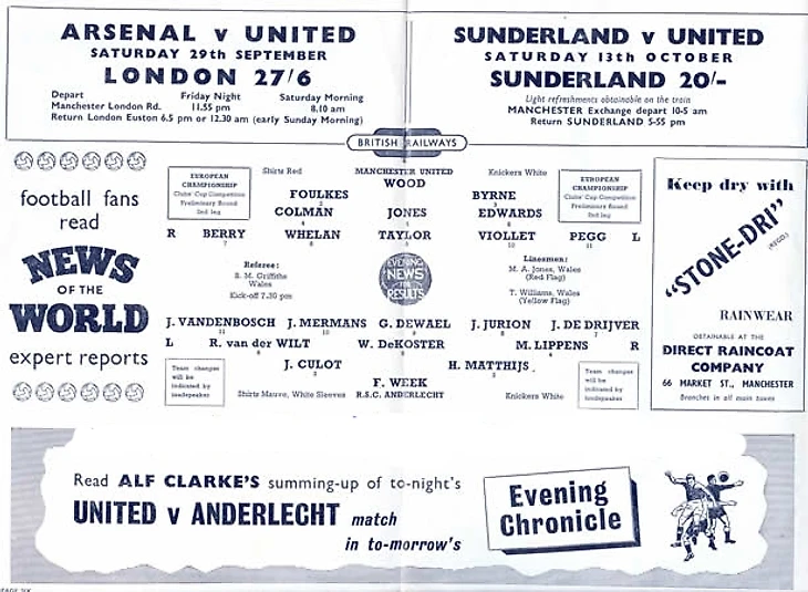 26 сентября 1956 года матч между "Манчестер Юнайтед" (Англия) и "Андерлехт" (Бельгия), Кубок Чемпионов 1956/1957 годов, 2-й матч квалификационного раунда. Этот памятный матч закончился со счётом 10-0 в пользу "Манчестер Юнайтеда".