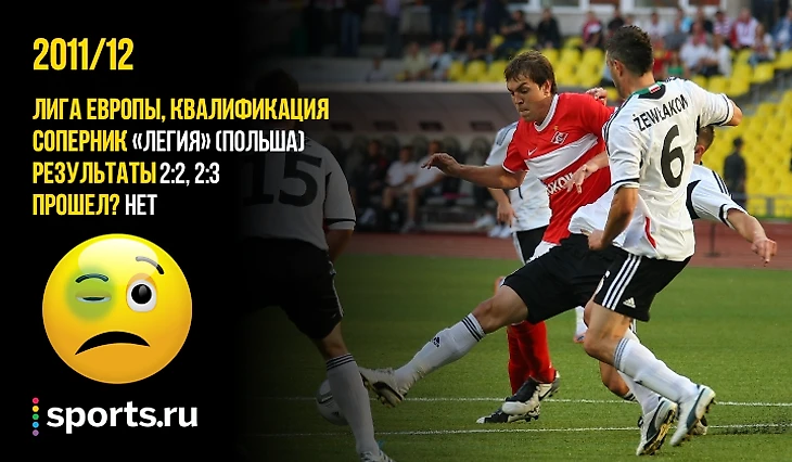 Пять последних еврокубковых раундов в исполнении других российских клубов. Выход из Лиги чемпионов в Лигу Европы зачтен за успешно пройденный раунд. Чтобы облегчить страдания красно-белой публики, в скобках выход из Лиги чемпионов в Лигу Европы посчитан как 0,5 успешно пройденного раунда.