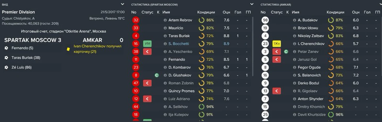 Дисклеймер: для своего эксперимента я взял стандартную базу данных Football Manager 2017 (февраль 2017 года). Эксперимент длится ровно сезон — с лета 2016 года по июнь 2017. К сожалению, подогнать результаты первого круга и сымитировать второй не представлялось возможным с технической стороны. В остальном всё настоящее — тренеры, игроки, стадионы т.п.