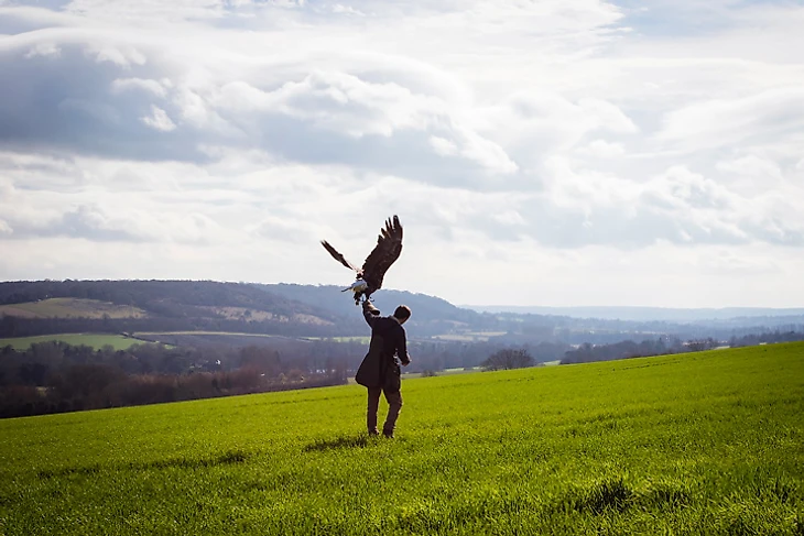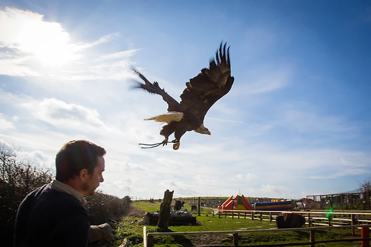 Кайла делает круг над холмом, возвращается к дрессировщику, впиваясь 15-сантиметровыми когтями в толстую перчатку, и сурово смотрит на меня сверху вниз немигающими желтыми глазами. «Она точно не чувствует, что я не болельщик «Кристал Пэлас»? – уточняю на всякий случай, на что Джонатан смеется: «Не переживай, даже если ты болеешь за «Миллуолл», она не будет возражать».