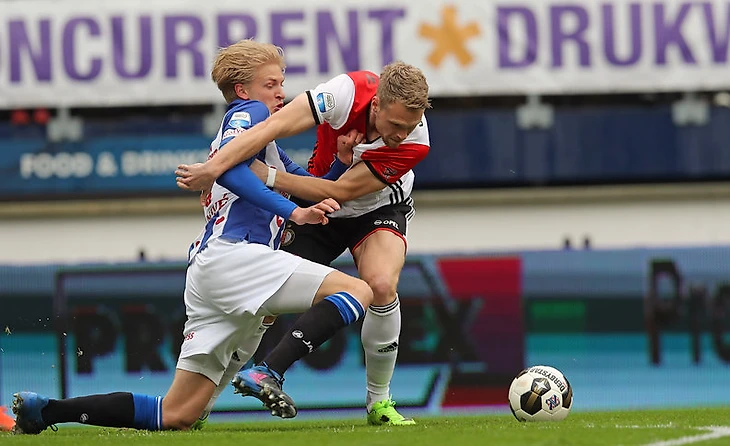 27 и 28 туры приготовили «Фейеноорду» два непростых испытания: в 27-м пришлось ехать в негостеприимный Херенвен, а в 28-м состоится, пожалуй, главный матч сезона в Амстердаме с «Аяксом». В лазарете у роттердамцев по-прежнему числятся Элиа и Конголо, зато восстановился основной кипер Брэд Джонс. Именно Джонс занял место в рамке в игре с «Херенвеном», отправив игравшего с АЗ Вермеера в запас. В старте вышел и Дирк Кюйт, пару матчей назад посаженный ван Бронкхорстом на лавку и очень обидившийся на это. Впрочем, Дирк на неделе заявил, что больше не будет комментировать действия тренера, так как это вредит команде. Тройку нападения составили Бергхёйс, Йоргенсен и Тоорнстра. Кстати, Тоорнстра получил вызов в сборную Голлландии, за которую не играл с 2013 года! Матч «Фейе» и «Херенвена» также воспринимался и как дуэль двух лучших снайперов лиги - Йоргенсена и Гочанежада. Датчанин оформил хет-трик в прошлом туре, оторвавшись от своего иранского коллеги на 4 мяча.