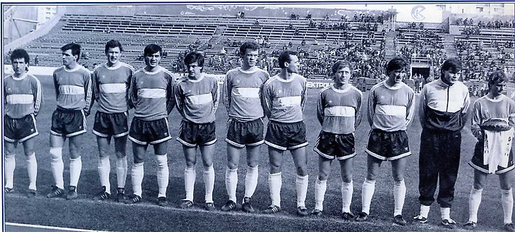 МЕТАЛЛИСТ-1989. Слева направо: Канищев (известный по ярким выступлениям за Даугаву и Зенит атакующий полузащитник, в Металлисте дебютировал в 90 г.)-ЯКУБОВСКИЙ-Щербак-Колоколов-ЕСИПОВ-(Ланцфер)-Тарасов-РАЛЮЧЕНКО-ИВАНОВ-(Симакович)-Сусло. 7 место в СССР под руководством замечательного в прошлом ИГРОКА - Л.ТКАЧЕНКО