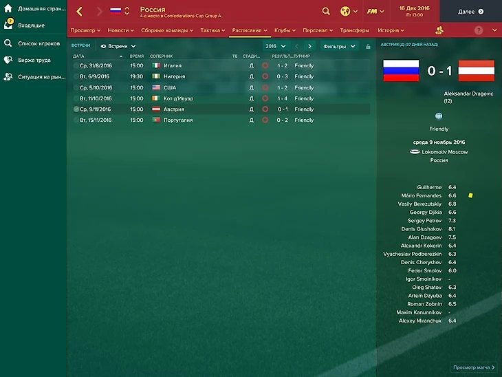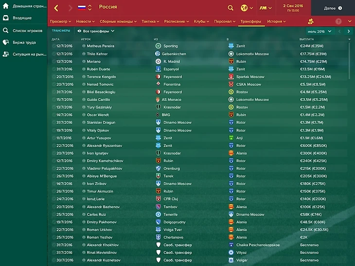 Симуляция начинается с 4 июля 2016 года, как раз после провального евромундиаля.