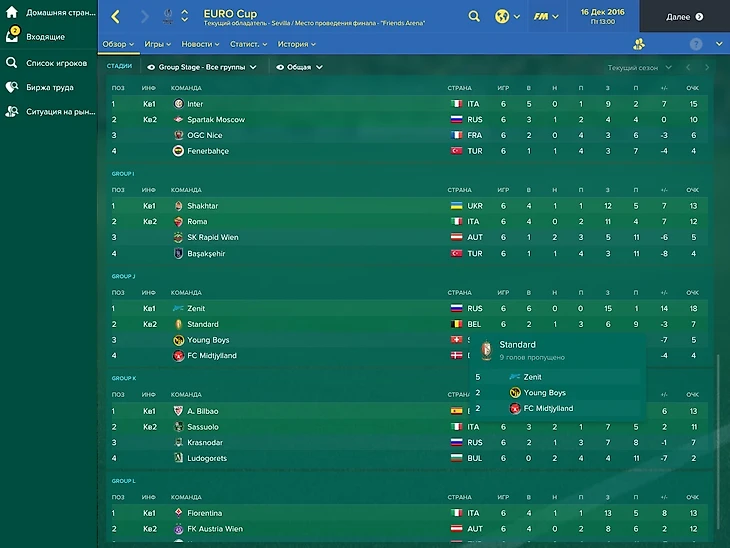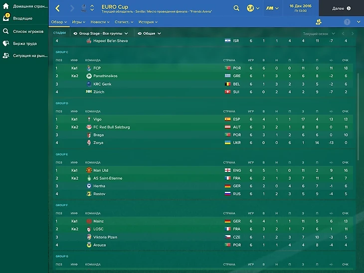 В еврокубках пока ситуация чуть лучше, чем в реальной жизни. В групповой этап еврокубков прошли все наши клубы. Зенит опять попал в довольно слабую группу и снова сделал 6 из 6 побед. Удивительно, но Спартак вышел в весеннюю часть ЛЕ из сложной группы. А вот в весну не попали как раз те, кто по настоящему дальше всех прошел. Вылетели Ростов и Краснодар. ЦСКА сенсационно вышел из группы ЛЧ со 2 места, но попал на Реал в 1/8.