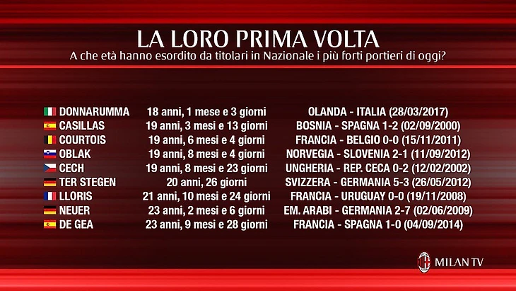 Голкипер «Милана» Джанлуиджи Доннарумма может стать самым молодым вратарем в истории сборной Италии, если появится в стартовом составе в матче против команды Нидерландов.