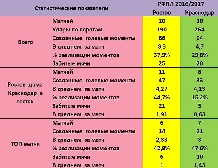 Философия «Краснодара» исторически подразумевает атакующую игру, философия «Ростова» Бердыева – наоборот, контратакующий футбол. В нынешний момент времени желто-синие достигли лучшего прогресса в своей философии, чем зелено-черные. «Ростов» в этом сезоне действительно эффективно контратакует, а вот для «Краснодара» позиционные атаки пока не так полезны, как в прошлом и позапрошлом году. Выходит, что традиционное распределение ролей в матче будет на руку хозяевам.