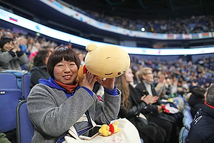 Поклонница японца Юдзуру Ханю, который спустя два года вернул себе чемпионский титул. Эта мягкая игрушка, можете не сомневаться, долетит до любимого фигуриста.