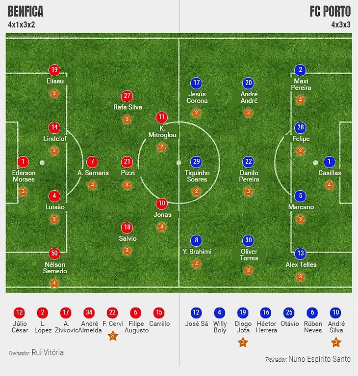 Лиссабонцы с первых минут захватили инициативу и уже в дебюте встречи сумели выйти вперёд. Маркано сбил Жонаса в собственной штрафной и бразилец ударом с одиннадцатиметровой отметки открыл счёт. В целом первый тайм прошёл под диктовку «Бенфики» и скорее «орлы» были близки к тому, чтобы увеличить счёт, чем «Порту» сравнять счёт. Но Митроглу с Луизао запороли свои моменты и на перерыв команды ушли при минимальном преимуществе хозяев. Неизвестно, что конкретно сказал своим подопечным Нуну Эшпириту Санту, но на второй тайм на поле вышел совершенно другой «Порту». Гости с первых минут бросились отыгрываться и в итоге им это достаточно быстро удалось. Макси Перейра оказался расторопнее всех в штрафной соперника, после прострела Браими и в падении поразил ворота своей бывшей команды. Обычно игроки не празднуют забитые мячи в ворота бывших команд, но это был явно не наш случай. Болельщики «Бенфики» всю игру скандировали оскорбления в адрес своего бывшего игрока и потому мало кто удивился, что забив гол, уругваец знатно отметил это событие. Почти тут же Соарес мог вывести «драконов» вперёд, но Эдерсон вовремя вышел из ворот и отвёл угрозу. А затем настало время Касильяса. Испанец, демонстрирует в этом сезоне феноменальную игру и эта встреча не стала исключением. Икер совершил три супер спасения и тем самым спас свою команду от огромных неприятностей и подарил её ничью, которая позволила «Порту» продолжить погоню за «Бенфикой».