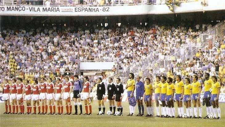 ЧМ -1982 г. Перед матчем БРАЗИЛИЯ-СССР. Лишь в этом стартовом матче сб.СССР, во главе с тонким и изящно-мыслящим Диспетчером Ю.ГАВРИЛОВЫМ, показала НАСТОЯЩИЙ Бесковский Футбол, созидательный, яркий и комбинационный! Но а затем, негласная директива сверху, поставившая во главе тренерского "триумвирата" Лобановского, практически сразу придала игре нашей сборной черты бескрылого прагматизма и ... рациональной "псевдонаучности" ...