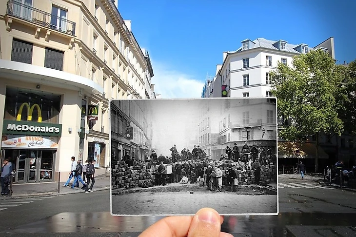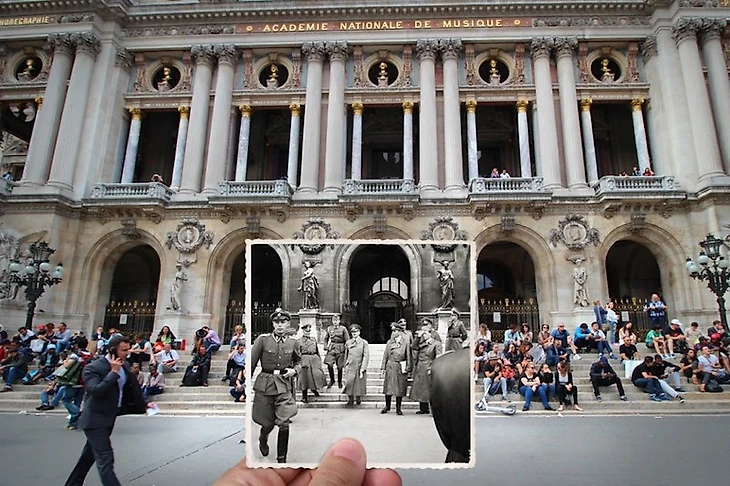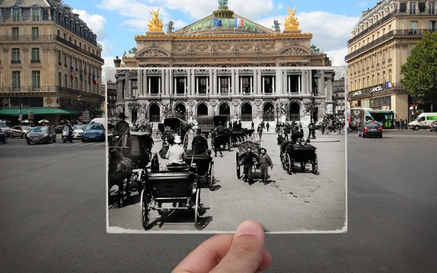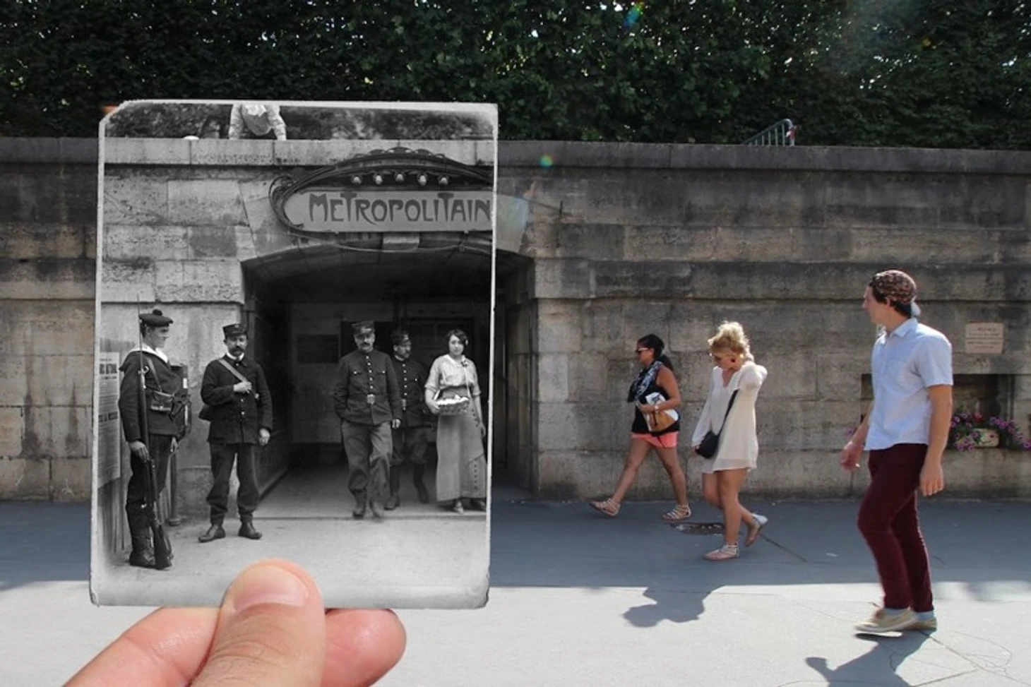 Недавно художник-постановщик Жюльен Кнез показал интересный проект, в котором он фотографировал улицы Парижа и накладывал старые фотографии.