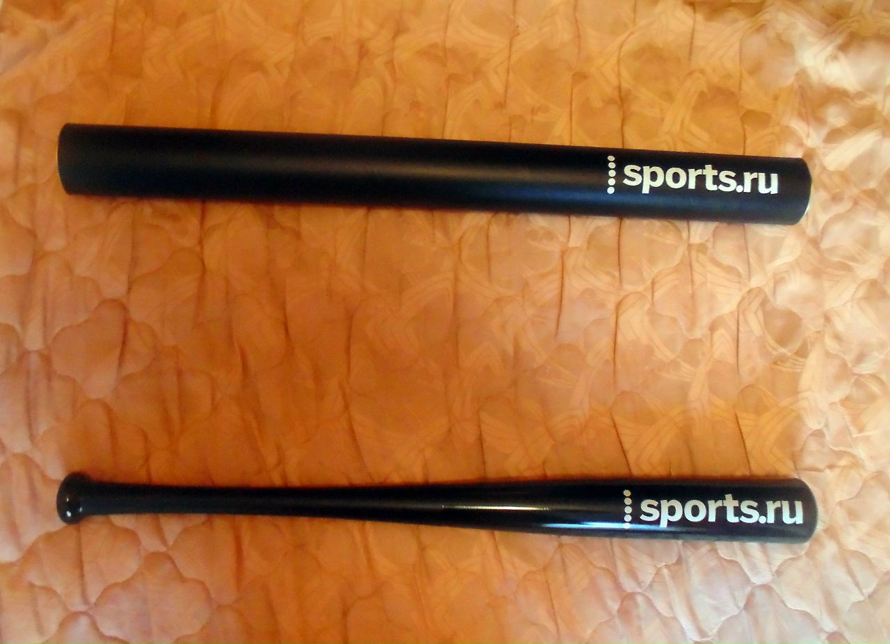 И в целом мы подняли неплохой уровень хайпа, хоть некоторых бесили своими массовыми статусами про конкурс, но что поделать, тогда это был чуть ли не единственный способ что-то рассказать. Так вот я благодарен Сергею Гилёву (тогда глава соц. редакции), надеюсь он меня уже забыл, потому что мне очень стыдно за те тонны нытья ему в личную почту, по абсолютно любому поводу. Разговор завязался с просьбой поддержать проект, а потом я ему рассказывал обо всём подряд, что происходит с конкурсом, он слушал, подбадривал, давал советы, помог собрать неплохое жюри из известных на сайте людей. В итоге по его инициативе, мне от редакции Sports.ru, из Москвы, доставили курьером (для меня это особая гордость была в тот момент, в том возрасте) такую вот бейсбольную биту с логотипом сайта –