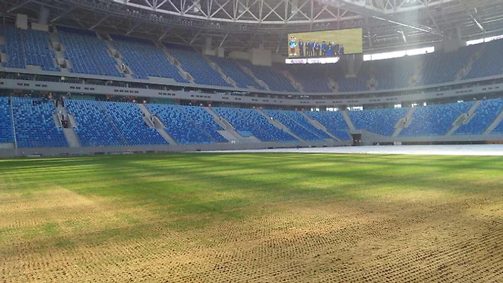 Когда показалось, что со стадионом «Крестовский» уже все хорошо и 22 апреля он спокойно и торжественно примет первый официальный матч, появилась информация агентства Regnum о том, что газон безнадежно испорчен.