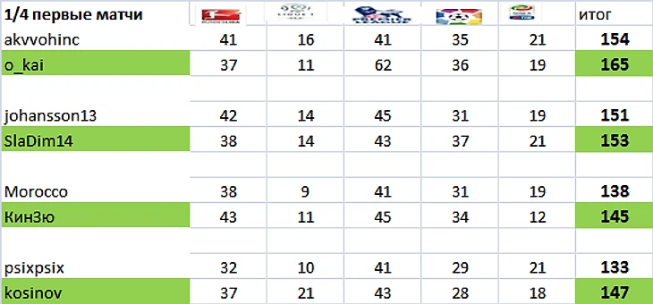 Итоги Гран-При (4-6, 7-10 апреля) и первых матчей 1/4 Кубка