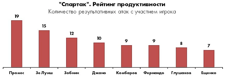 Это в полной мере относится и к Роману Зобнину, который этой весной исключительно продуктивен вне зависимости от того, на какой позиции играет. В пяти матчах после зимнего перерыва он набрал уже 7 очков за голевой соучастие, тогда как по итогам 17 осенних туров на счету хавбека было только 5 результативных баллов. Благодаря своим подвигам Роман ворвался в тройку самых продуктивных игроков «Спартака» в нынешнем чемпионате.