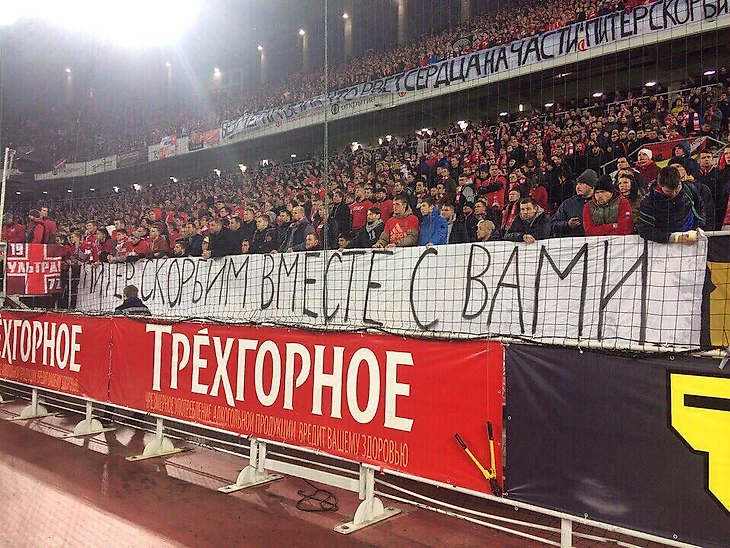 Сегодня - 9 дней с теракта в питерском метро, унесшего жизни 14 невинных людей. Давайте вспомним, как это горе объединило фанатов со всей Европы.