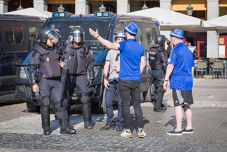 «Фанаты просто шли по улице и разговаривали, когда их забрала полиция», – передают журналисты, рискуя превратить «просто гуляли и разговаривали» в мем о не самом приятном фанатском поведении. В день игры некоторый процент из шести тысяч приехавших в Мадрид англичан и правда ведет себя не лучшим образом, но истерия, разгоняющаяся в социальных сетях, реальности соответствует не сильно. Фанаты не громят Мадрид: просто пара десятков пьяных идиотов перегрелись на солнце и начали реагировать на тоже не самые правомерные действия испанской полиции.