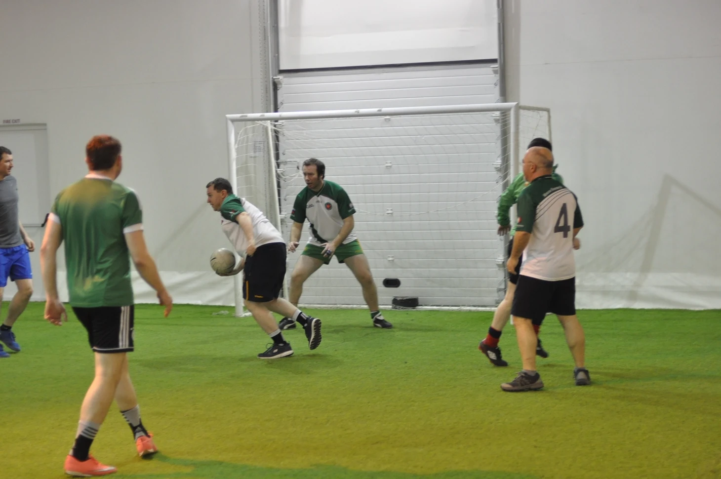 Теперь начинается серьезная часть тренировки. Дети становятся болельщиками, девушки уходят на второе поле заниматься по своей программе, и только лежачие ирландцы с ребенком остаются на своих местах. С мужской половиной команды мы играем в одни ворота: три защитника против трех нападающих. Атакующая сторона придумывает разрезающие передачи (чаще всего руками), пробегает мимо обороняющихся и лупит по воротам с ноги. Не ногой, а именно с ноги и по летящему мячу, но Киран дерется не хуже Давида Де Хеа, блокирует многие удары и вышвыривает мяч за центральный круг.