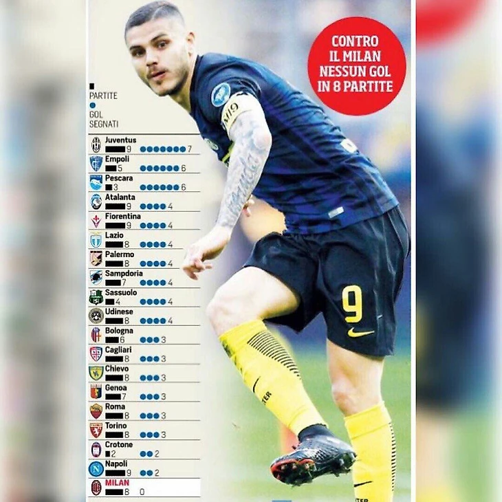 Тем не менее Икарди ни разу не удавалось отличаться в играх против «Милана». Не помогали и пенальти в ворота «россонери». За 8 поединков Мауро так и не открыл счет своим забитым мячам в дерби. Сегодня будет новая попытка сделать это.