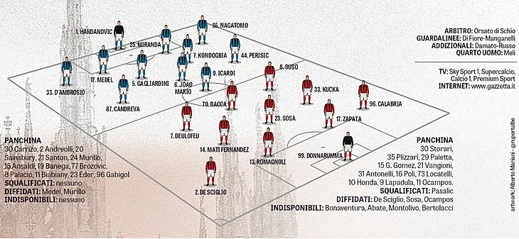 Так же не стоит сбрасывать со счетов вышеупомянутого Ивана Перишича. В прошлой встрече команд хорват был самым опасным игроков с составе черно-синих, создал немало проблем защитникам красно-черных, в итоге своим голом на последних минутах лишив «россонери» вкуса столь близкой победы.