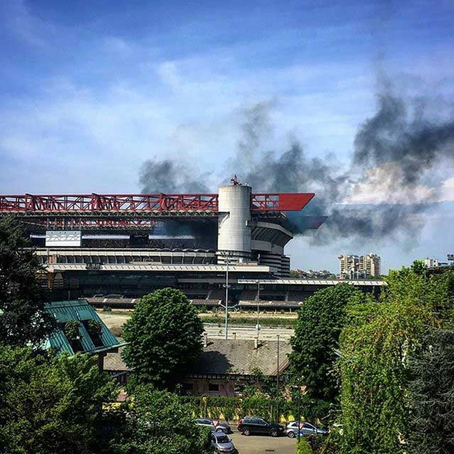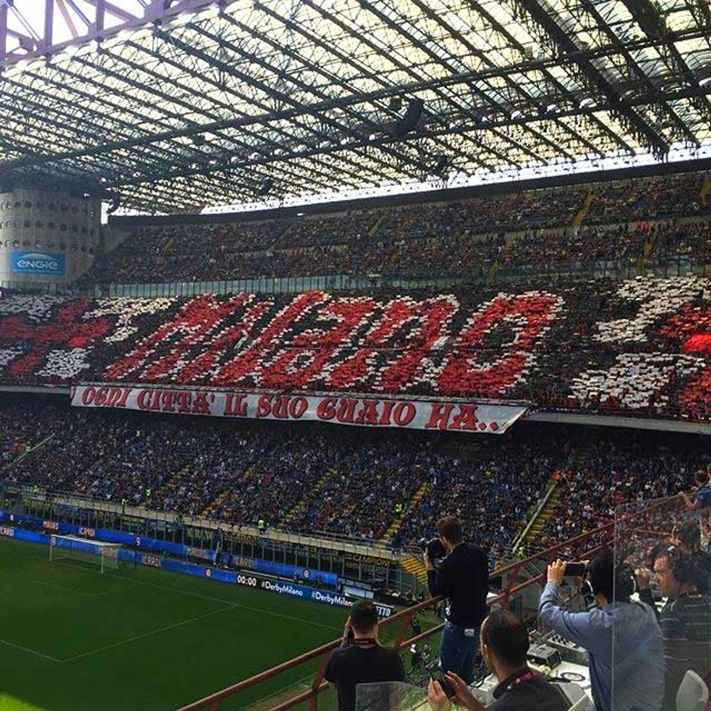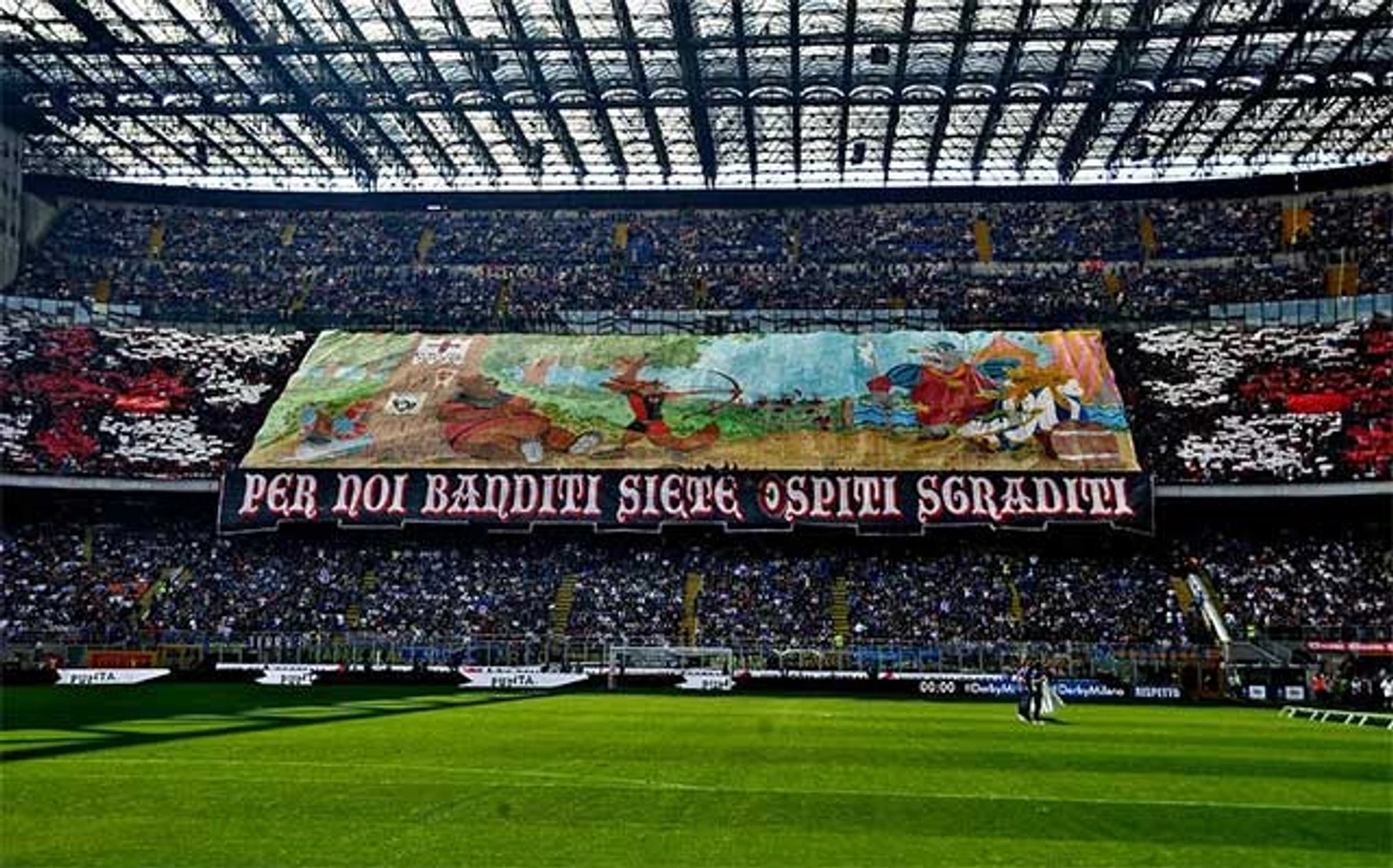 Ультрас "Милана" в своем хорео были изобретательнее: оригинальный сюжет со сменяемой картинкой и надписью из двух частей: "Милан. Каждый город имеет свои проблемы..."