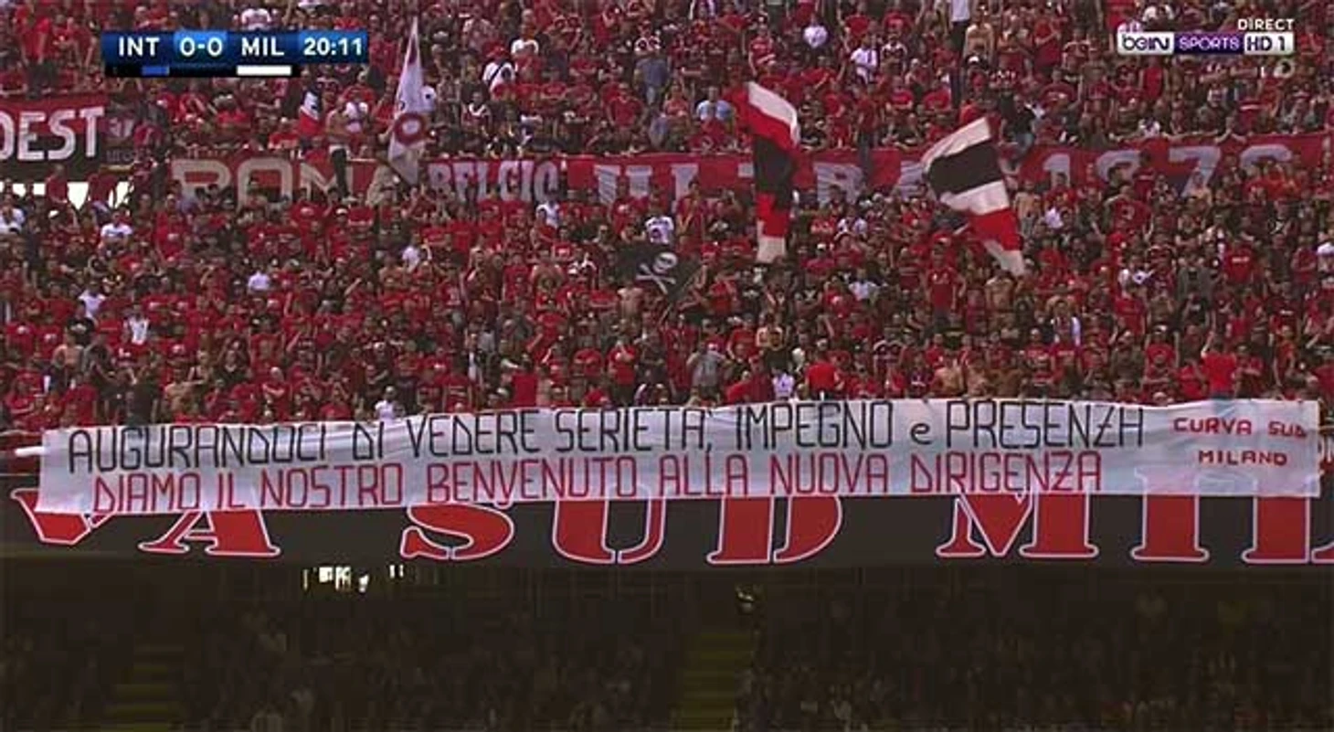 Нужно сказать, что соглашение по продаже "Милана" предусматривает солидные денежные вливания со стороны китайцев в итальянского гранда. Ожидается повышение уставного капитала и улучшение финансового состояния миланской команды. После закрытия сделки по приобретению клуба китайцы в последующие 3 года инвестируют 350 миллионов евро, причем первые 100 миллионов евро вот-вот должны пополнить казну "Милана". В связи с этим тифози "Милана" довольно оптимистично смотрят в будущее и даже вывесили вчера вот такой баннер: "Надеясь увидеть всю серьезность намерений, приверженность сдерживать обещания и участвовать в жизни клуба, мы приветствуем новое руководство!".