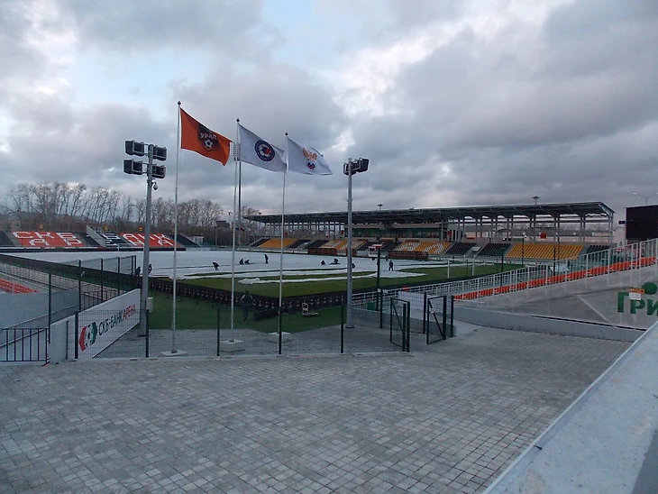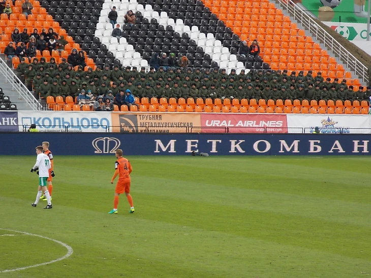 Солнышко иногда обогревало "СКБ-Банк Арену" своими лучами, как на построении команд, но это было так же редко, как голевые моменты в поединке. Серьезно, эти две вещи были почти синхронизированы (фото кликабельно).