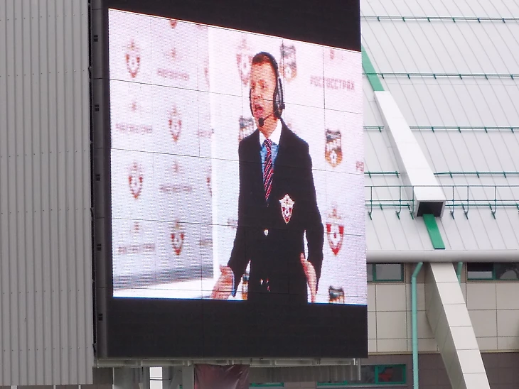 На табло врубили рекламный ролик, в котором Леонид Парфенов рассказывает об истории екатеринбургского клуба и заканчивает его пророческим "Вперед, "Урал", нас ждет финал!" Знал бы Леонид во время съемок, что эта фраза станет волшебной!