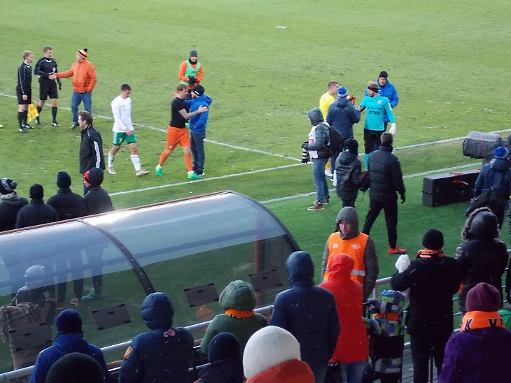 Именинник так замерз за 45 минут, что после свистка на перерыв первым убежал в раздевалки. Не мудрено! Иногда мне было жаль, что никто не догадался за всё это время притащить ему с бровки такой же теплый пуховик, ну или стаканчик чая.