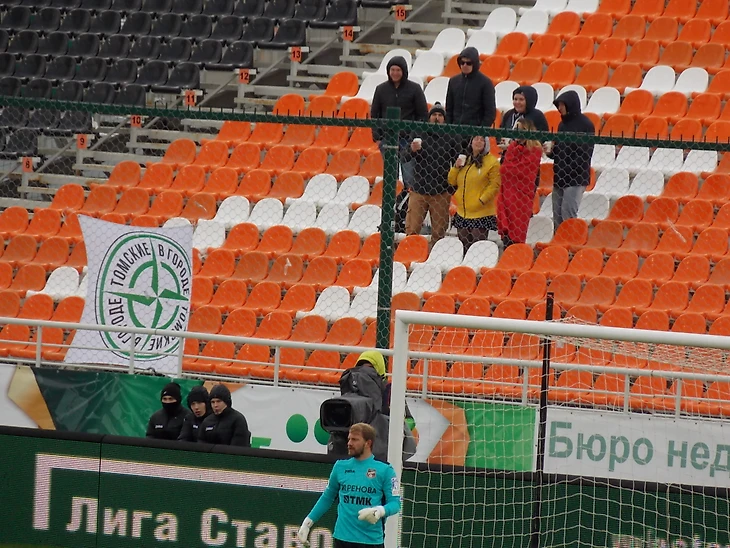 Отчетный матч собрал весьма скромную зрительскую аудиторию. И виной тому погода, это действительно так. Собираясь на стадион, я достал из шкафа убранный на полгода (как мне ранее казалось) теплый пуховик. И даже он вкупе со свитером не спасал от адского северного ветра, который ставил флаги стоймя и гнул флагштоки лежмя. А на улице +1, плюс пролетающие "белые мухи". Кто пришел - всем респект!