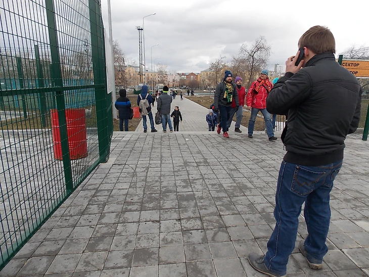 Дополнительную сотню добавила рота солдат, в три шеренги усевшаяся на С5. Кто знает, может среди них были призывники и из Сибири? Вели себя тихо, хотя могли бы образцово крикнуть троекратное "Урррааааа!" Получилось бы в 100 раз круче, чем человек с микрофоном из Грозного.