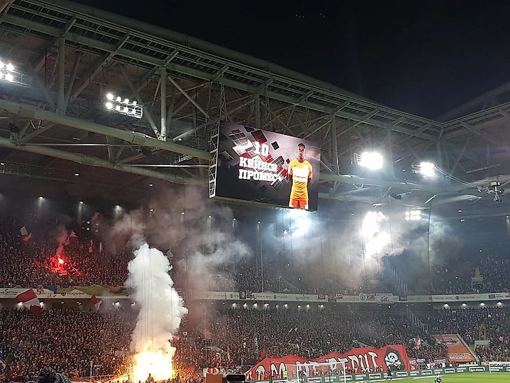 Понятно,что до лучших образцов европейского футбола далеко,но вот антураж и настоящая битва на поле были вполне себе на уровне.
