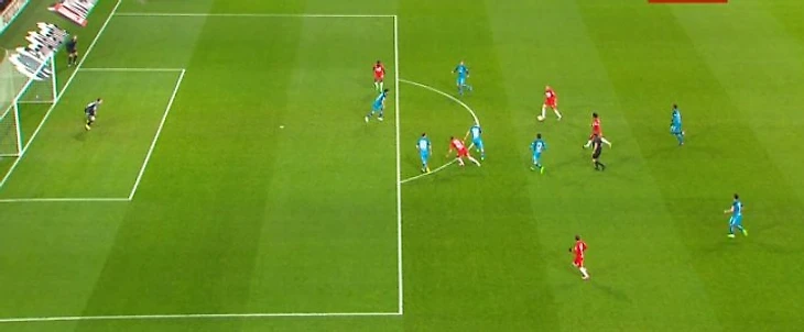 Второй тайм начинается с атаки Дзюбы после аута. Первый удар «Зенита» по воротам. Агрессии явно прибавляется. Наступательный Шатов вместо статичного Эрнани свидетельством. Логично, естественно и оставляет пространство для контратак. Сюжет в развитии.