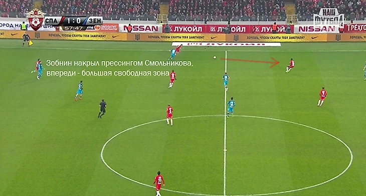 На своём фланге Смольникову противостоял Роман Зобнин, и 47-й номер «Спартака» выиграл свой микроматч за счёт главных своих достоинств – физики и чтения игры. В ситуации с первым голом Зобнин продавил Смольникова и оттёр его корпусом от мяча, позже одним проигранным единоборством Игорь «привёз» на свои ворота атаку 4 в 3 с численным преимуществом красно-белых. Смольников ошибался под прессингом – Зобнин старался накрывать защитника в момент приёма мяча, однажды отбором разогнал острую атаку, ещё несколько раз вынуждал быстро принимать неудобные решения. Вдобавок плохо работала подстраховка – проигрывая борьбу на фланге, Смольников оставлял свой край голым, Иванович успевал страховать лишь изредка.