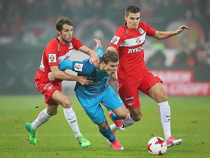 При этом удивительно, что при акценте на фланговую игру «Зенит» весь первый тайм напрягал соперника только крайними защитниками: Кокорин и Данни – инсайды, в немногочисленных ситуациях, когда Кокорин получал мяч, он делал это на полуфланге, ближе к центру. Вдобавок «Спартак» вновь недостаточно плотно защищался на флангах: Смольникову давали подключаться и навешивать в штрафную, у Шатова получались симпатичные комбинации, где он пасом отрезал Комбарова, а гол пришёл после того, как Самедов проиграл Кришито борьбу за мяч и выключился из эпизода. То есть даже редкая сильная сторона весеннего «Зенита» Луческу – фланговый футбол и регулярные подачи на Дзюбу – против «Спартака» не была использована в полной мере.