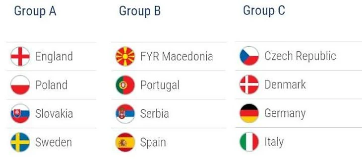 Соперниками Тре Крунур на групповом этапе станут сборные Англии, Словакии и хозяева турнира сборная Польши. Стартовый матч пройдет как раз против англичан, а на последнем триумфальном Евро именно они стали единственной командой, сумевшей нас обыграть (0:1). Однако, нет смысла проводить здесь сравнения и параллели, ведь сейчас будут играть совсем другие команды, другие фамилии, будут новые звезды и новые противостояния. В любом случае, Англия один из фаворитов предстоящего Евро, и первый матч должен дать ответы на многие вопросы о перспективах Тре Крунур на турнире. Потом предстоит матч против хозяев - сборной Польши, которые автоматически квалифицировались на турнир. Рассуждать об их силе и возможностях, опираясь лишь на результаты товарищеских игр очень сложно. Завершать групповой этап предстоит матчем против сборной Словакии, которая уверенно выиграла свою отборочную группу, дважды обыграв своих главных конкурентов сборную Голландии (3:1 и 4:2). Какие будут расклады на самом деле можно только гадать, но абсолютно ясно, что новый формат турнира до последнего тура будет держать в напряжении всех претендентов на выход в полуфинал.