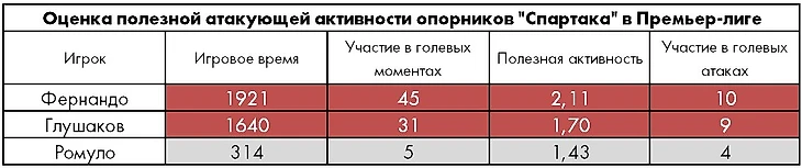 Фернандо и Глушаков стабильно активны на протяжении всего чемпионата, и, в отличие от коллег из «Зенита», индивидуальная планка в 3 полезных атакующих действия за матч покорялась им уже 13 раз по ходу этого чемпионата (7 и 6 соответственно).