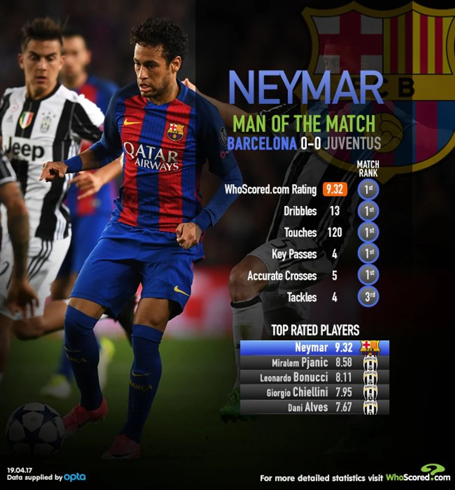 Неймар – лучший игрок матча «Барселона» – «Ювентус»