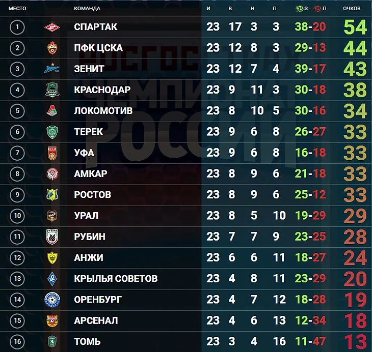«Уфа» идёт на седьмом месте, но располагается в очень плотной группе. Столько же очков — 33 — у «Терека», «Амкара» и «Ростова», а «Локомотив» лишь на очко впереди.