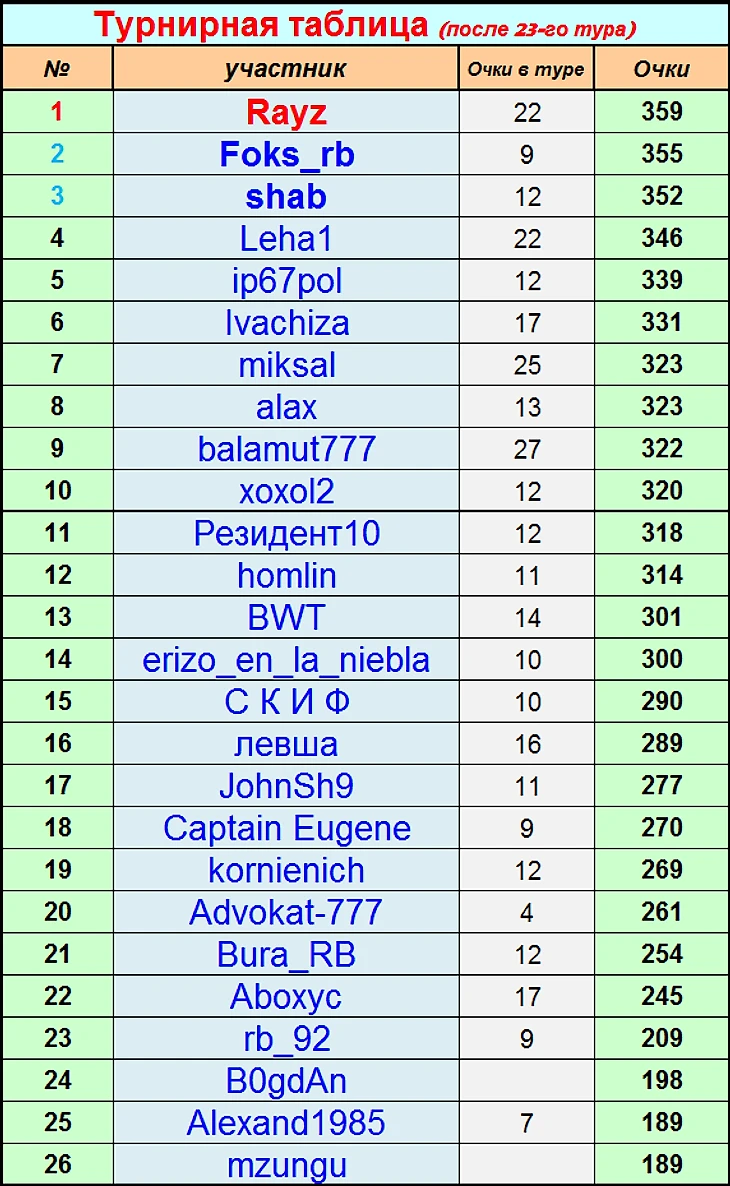 Средняя результативность 23-го тура в Лиге РА - 13,00 очка