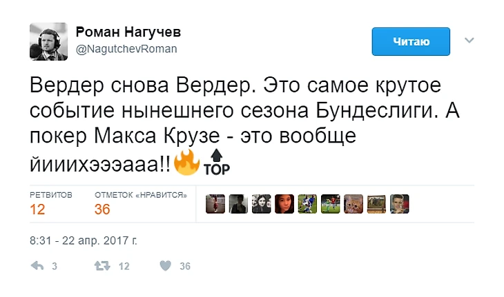 Кстати, одной из причин недовольства болельщиков «Вердера» трансфером Макса Крузе была его страсть к игре в покер. Забавно, да?